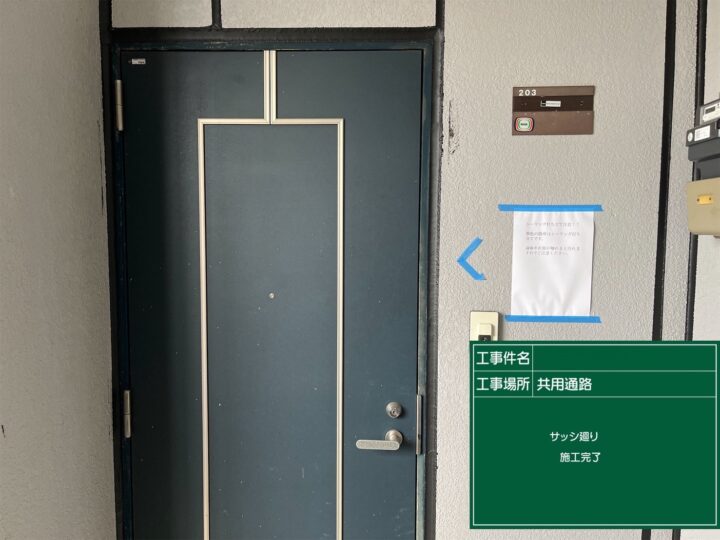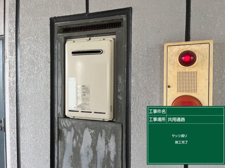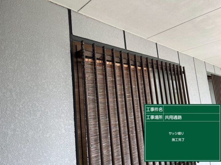 シーリング 共用通路サッシ廻り施工完了