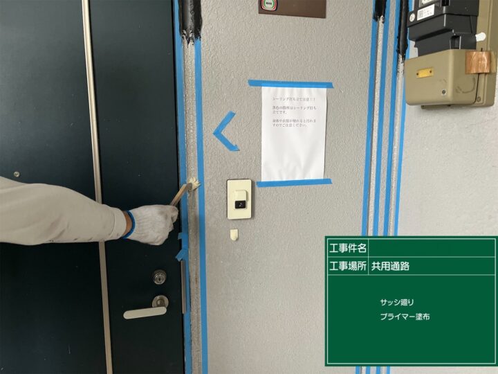 シーリング 共用通路サッシ廻りプライマー塗布