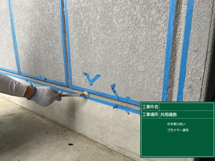 シーリング 共用通路巾木取合プライマー塗布