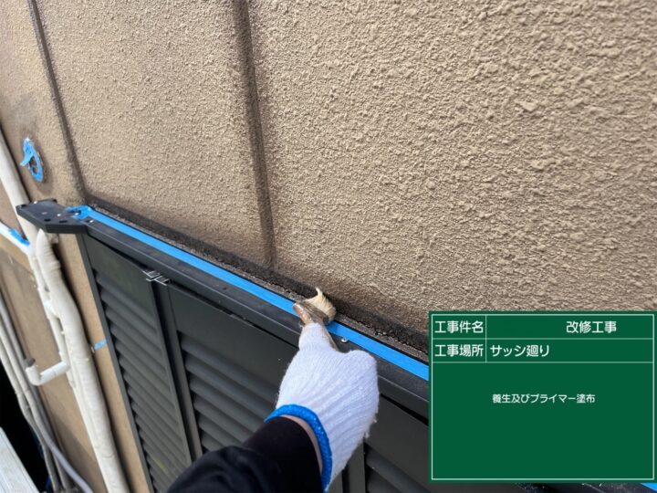 シーリング サッシ廻り養生及びプライマー塗布